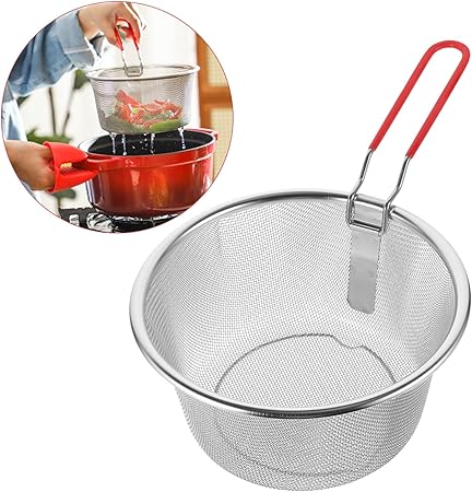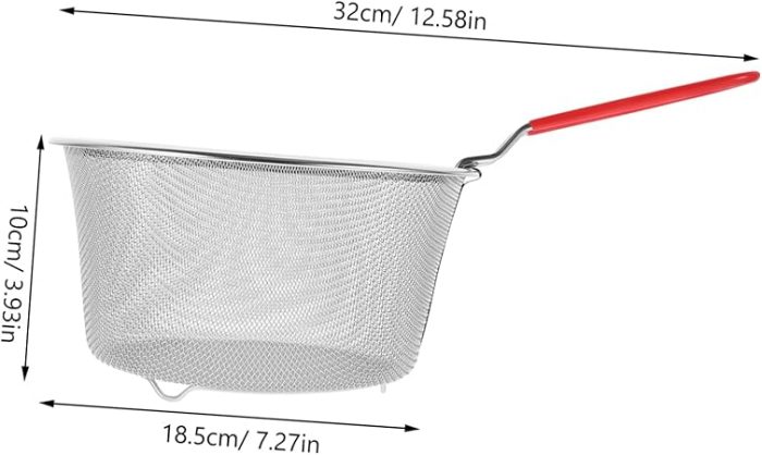 Paslanmaz Çelik Kızartma Sepeti İnce Ağızlı Makarna ve Atıştırmalık Süzgeci Derinlik Hafif ve Dayanıklı Hava Fritözü için Uygun Mutfak Aleti