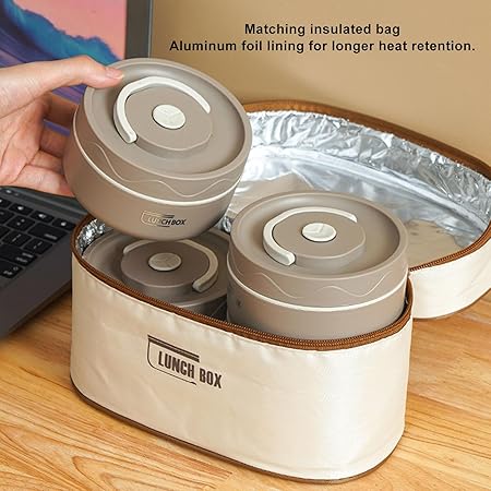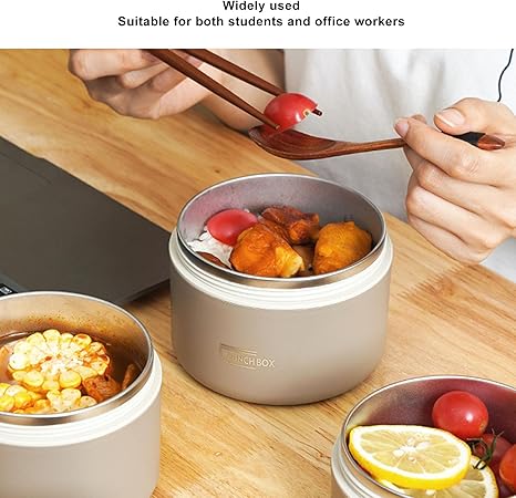 Paslanmaz Çelik Öğle Yemeği Kabı Termal Çanta ile 1-2 Saat Sıcak Tutar, Çıkarılabilir Astarlı Mühürlü Gıda Öğle Yemeği Kapları Kutusu, Mikrodalgaya Uygun