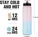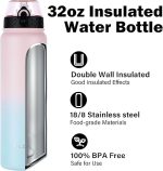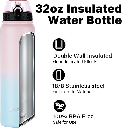 【12 SAAT SICAK SU VE 24 SAAT SOĞUK TUTUN】 – Bu 1 litre çift duvarlı paslanmaz çelik su şişesi 18/8 (304) paslanmaz çelikten, %100 BPA içermez, toksik değildir, ter içermez, metalik tat veya tuhaf bir tada sahiptir. Çift cidarlı özelliği, içeceğinizin sıcaklığını koruyarak yoğuşmayı ve yanıkları önler. Yazın her türlü serin ve ferahlığın tadını çıkarmanızı sağlar, soğuk kışın sıcaklığın tadını çıkarın.
