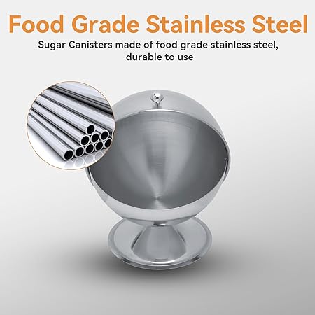 Paslanmaz çelik şekerlik, küre şeklinde şekerlik, şeker küpü tutucu, şeker kutusu, bisküvi, nane şekeri, kase, büyük şeker kabı, rulo kapaklı ev mutfağı için