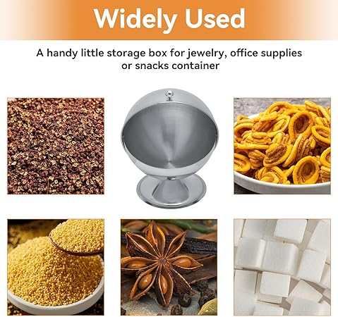 Geniş uygulama: Ofis için küresel şeker kasesi aileler, barlar, kafeler, oteller, restoranlar, ziyafetler, büfeler vb. için uygundur. Gümüş şeker kasesi ihtiyaca göre tatlı ve fındık servisi için kullanılabilir. Mutfakta düzen sağlamak için biber, zencefil, sarımsak ve diğer baharatları ekleyebilirsiniz.