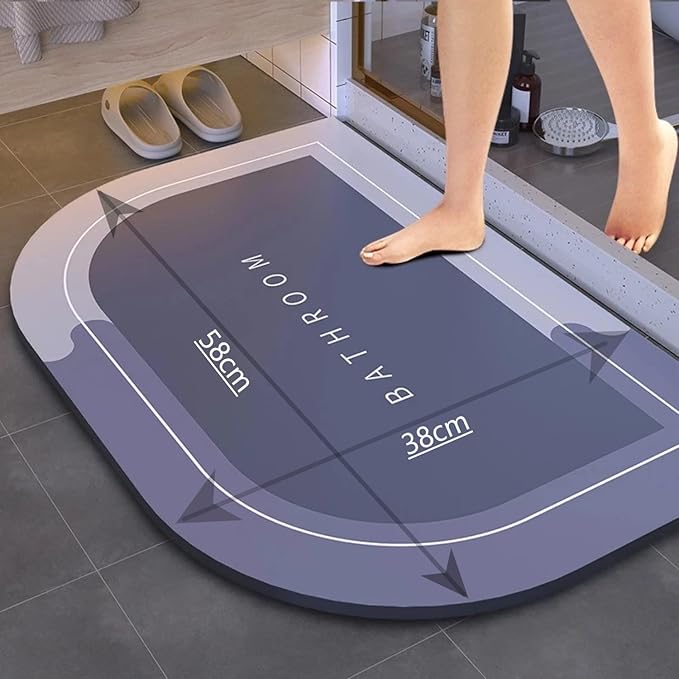 Paspası Kaymaz Tabanlı Süper Emici Nappa Deri Banyo Paspası Abdest Paspası (58x38cm) (Mavi)