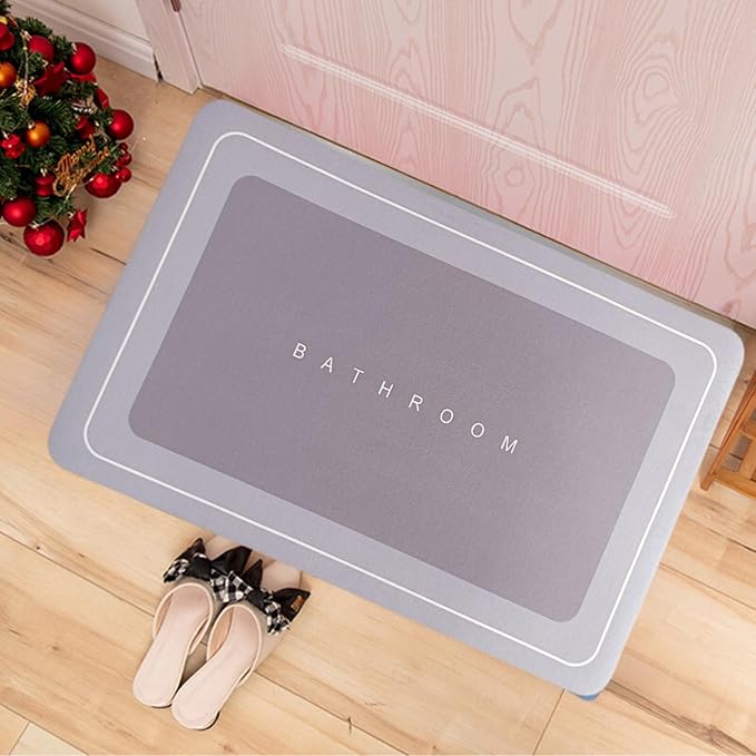 Paspası Süper Su Emici Kaymaz Tabanlı Paspas Banyo Paspası Dikdörtgen Diatomit Paspas Süper Emici Paspas Dikdörtgen (60x40cm) (Gri)