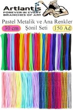 Pastel Metalik ve Ana Renkler 30 cm 150 li 1 Paket Renkli Tüylü Tel Peluş Tel 30 cm Elişi Okul Projeleri Süsleme