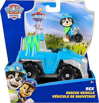 Rex oyun figürü ve aracı büyük ölçüde geri dönüştürülmüş plastikten oluşur. Ryder, Chase, Marshall, Skye, Rubble, Zuma, Rocky, Everest ve Tracker araçlarıyla birlikte ayrı ayrı satılır.