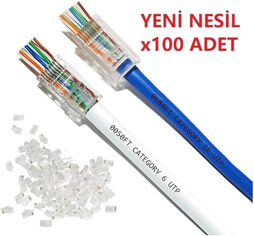 Pazar Yeni Nesil Delikli Cat6 Ez Rj45 Konnektör Utp Jack (100 Adet)