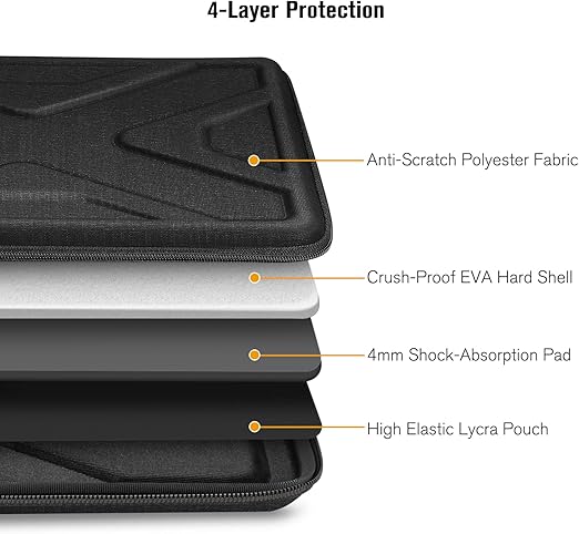 【Dayanıklı】 Dört katmanlı düşme koruması, çizilmez polyester kumaş, deforme olmayan sert EVA kabuk, 4 mm şok pedi, yüksek elastik likra kılıf, sağlam bir dizüstü bilgisayar kılıfı oluşturmak için birleşir.