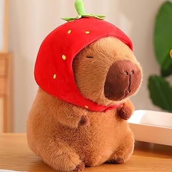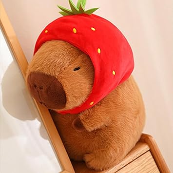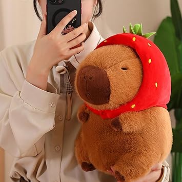 Peluş Oyuncak, Çilek şapka takan bir kapibara peluş oyuncak Sevimli Gerçekçi Süper Yumuşak Capybara Figürü Dolgulu Yastık, Harika Yılbaşı Hediyeleri Doğum Günü Hediyeleri (35CM)