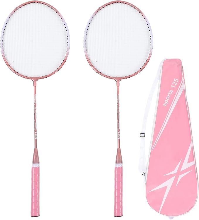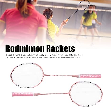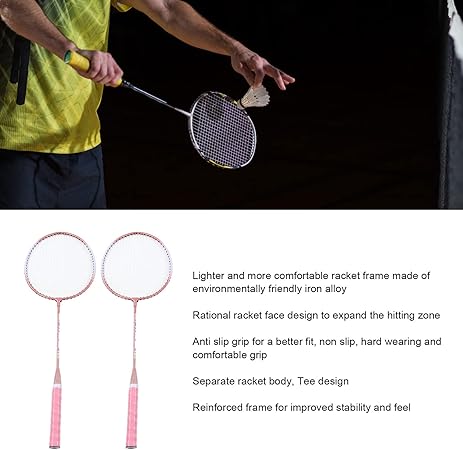 Pembe Badminton Raketleri T şekilli Tasarım Badminton Raketleri Yeni Başlayanlar Öğrenci Eğitimi Için Ayrı Demir Alaşımlı Çerçeve Badminton Raketleri Seti, Toplam Uzunluk 650mm