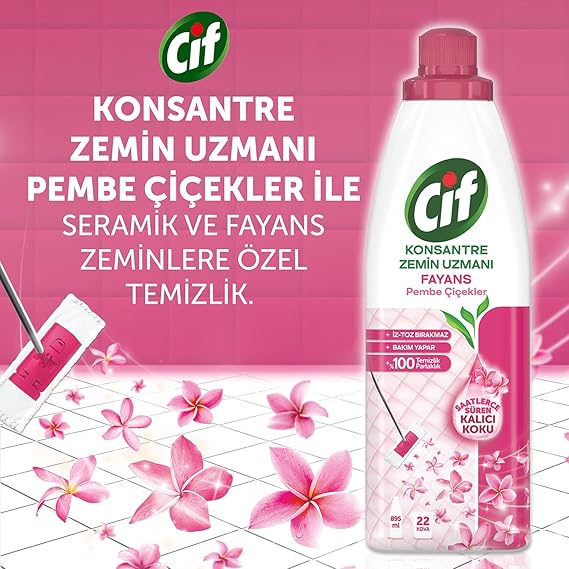 Pembe Çiçekler Konsantre Zemin Uzmanı Fayans Temizleyicisi 22 Kova 895 mL