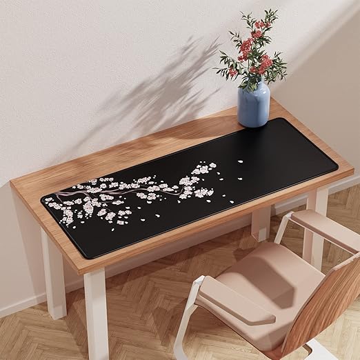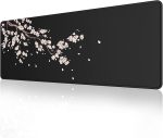 Pembe ve Siyah Kiraz Çiçeği Fare Altlığı (800 × 300 × 3 mm) Uzatılmış Büyük Fare Altlığı Çalışma Masası Altlığı, Dikişli Kenarlar Fare Altlığı, Kaymaz Kauçuk Taban, Oyun Fare Altlığı