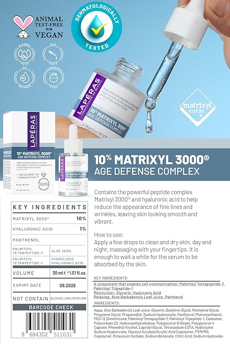 İçerdiği güçlü peptit kompleks Matrixyl 3000 ve Hyaluronik Asit ile ince çizgi ve kırışıklık görünümüne karşı yardımcı olur.