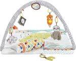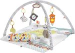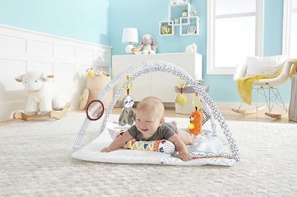 Bebekler için Yaşa Göre Gelişim özellikli ve Türkçe dil destekli mavi Fisher-Price Neşeli Hayvanlar Müzikli oyun minderi ve piyanolu jimnastik merkezi, taşınabilir müzik oyuncağı, HWY49