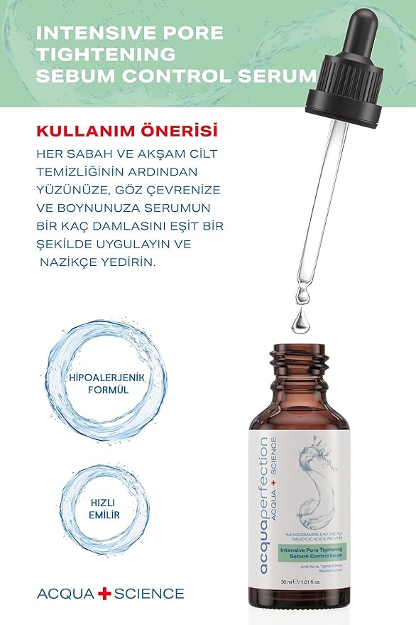 Perfection Sivilce Önleyici, Siyah Nokta ve Gözenek Karşıtı Arındırıcı Cilt Bariyeri Güçlendirici Bakım Serumu (%5 Niacinamide +%1 Zinc) 30ml, Akneli, Yağlı Ciltler için Sebum Dengeleyici