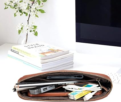 DAYANIKLI: Yüksek kaliteli dikiş ve kenar işçiliği kalem kutusunun zarif ve sade tasarımını vurgular. Üst taraftaki yüksek kaliteli fermuar şık bir tunç metal görünüme sahiptir ve kolayca açılır ve kapanır.