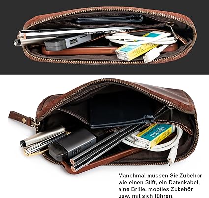 Peter® Vintage Darvin kalem kutusu, deri, YKK fermuarlı, kalemler için kalem kutusu, Balmumu bronzluk, çanta düzenleyici