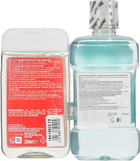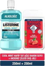 Petit Marseillais Duş Jeli Akdeniz Çileği 250 ml + Listerine Cool Mint Ağız Bakım Suyu Hafif Tat 250 ml