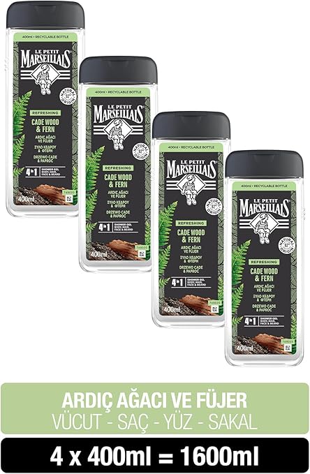 Petit Marseillais Duş Jeli Men Serisi Ardıç Ağacı ve Füjer (4 x 400 ml) çok renkli