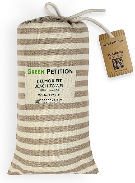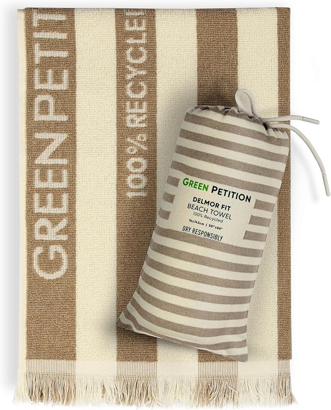 Petition Delmor Plaj Havlusu – Taşıma Çantalı, Doğa Dostu,%100 Geri Dönüştürülümüş, Sürdürülebilir, Organik, Hızlı Kuruma, Kimyasal İçermeyen, Boyasız, Canlı Renkler (Sand Beige, 76 x 142 cm)