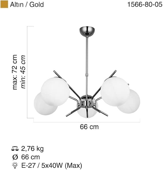 Maksimum 5X40W E27 duy ampul ile kullanılmalıdır, ampuller pakete dahil değildir