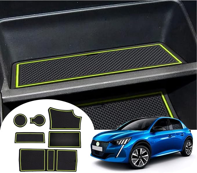 Peugeot 208 e-208/ Peugeot 2008 e-2008 Restyling 2020-2024 2025 Kaymaz Paspaslar, Peugeot 2008 2023 Kauçuk Paspaslar, Orta Konsol Paspasları, Kapı Dikişi, Peugeot 208 Aksesuar (Sarı Yeşil1)