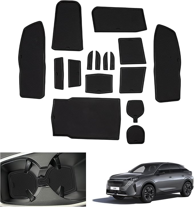 Peugeot e-3008 GT Allure 2024 2025 Kaymaz Paspaslar, Peugeot e3008 2024 Kauçuk Paspaslar Kaymaz Orta Konsol için Bardak Tutucu Kapı Dikişi, Peugeot e-3008 Aksesuar (Siyah)