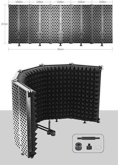 PF-43 Mikrofon Ses Yalıtım İzolasyon Paneli 5 Bölümlü Ayaklı (69×26 cm)