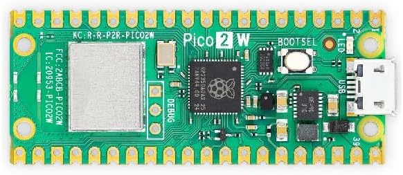 Raspberry Pi Pico 2 W Teknik Özellikler § IEEE 802.11 b/g/n kablosuz LAN § Bluetooth 5.2 § WPA3 ve SoftAP (4 istemciye kadar) § Çift çekirdekli çift mimari Arm Cortex-M33 veya RISC-V Hazard3 işlemci, 150 MHz’e kadar dinamik saat frekansı 520KB SRAM ve 4MB yerleşikQSPI Flash bellek Cihaz ve ana bilgisayar destekli USB 1.1 USB üzerinden yığın depolama kullanarak sürükle ve bırak programlama 26 × çok fonksiyonlu GPIO pini Özel çevre birimi desteği için 8 × Programlanabilir G / Ç (PIO) durum makineleri 2 × SPI, 2 × I2C, 2 × UART, 3 × 12-bit ADC, 16 × kontrol edilebilir PWM kanalları Çip üzerinde doğru saat ve zamanlayıcı Sıcaklık sensörü