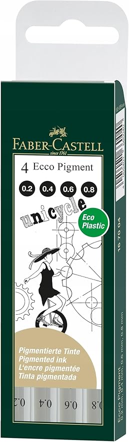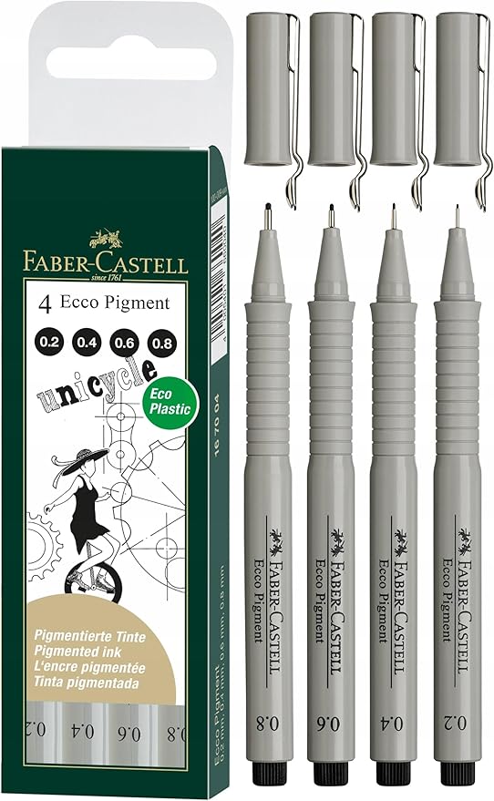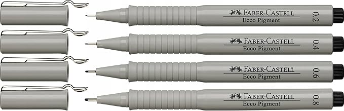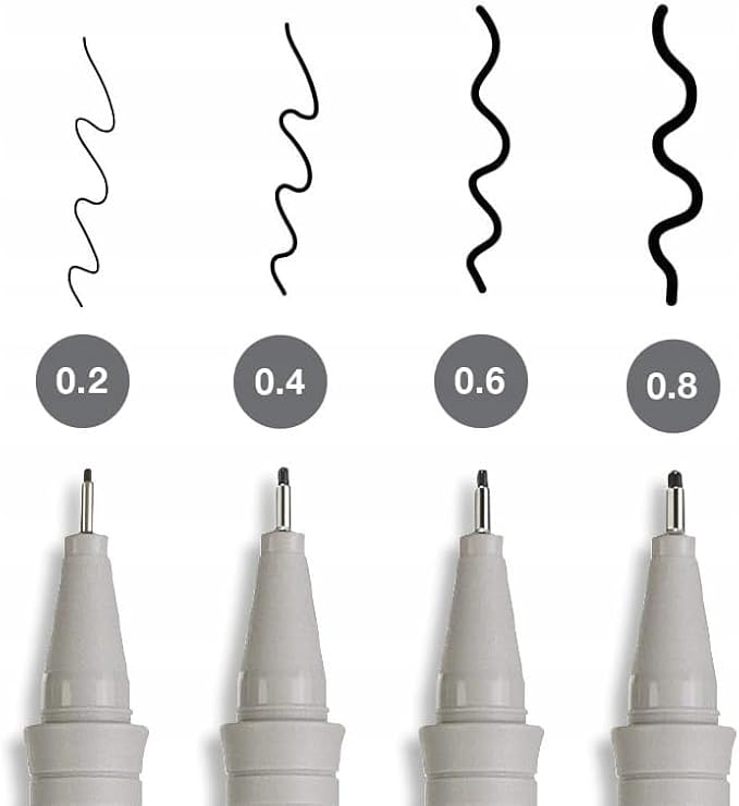 Pigment Çizim Kalemi Seti, 4’lü Siyah, 0.2 / 0.4 / 0.6 / 0.8 mm Uç, Su ve Işık Geçirmez Mürekkep, Cetvel ve Şablon Uyumlu