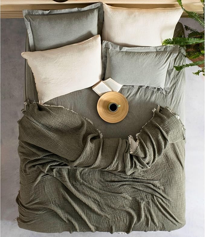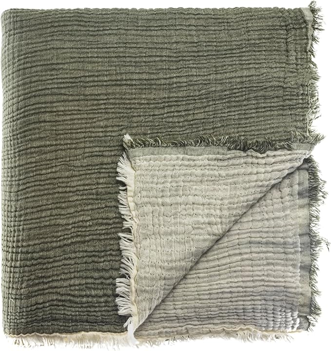 Pike Tek Kişilik, 100% Pamuk 4 Katlı Kaliteli Müslin Yatak Örtüsü, Dekoratif Şık Yumuşak Hafif Yazlık Pike (Haki Yeşil, Tek Kişilik 160×220 cm)