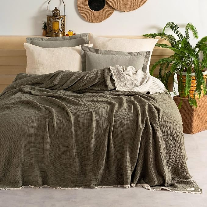 MALZEME: %100 pamuk müslin kumaştan üretilmiş, nefes alabilen ve cildinize nazik yapıya sahip yatak örtüsü
