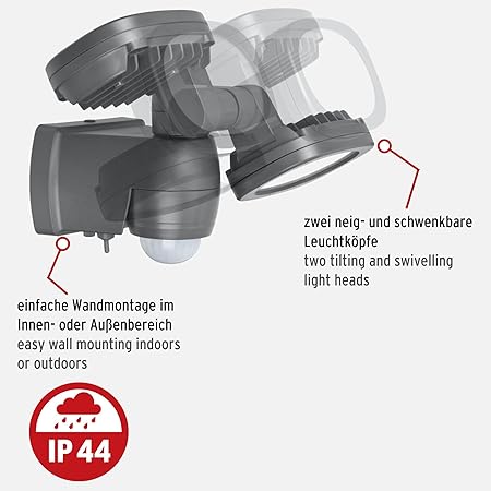 Kızılötesi hareket sensörü 180° algılama açısı ve 10 m menzil – 8 süper parlak, yüksek kaliteli marka LED karanlıkta optimum aydınlatma sağlar