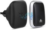 Pilsiz kablosuz zil, kablosuz kapı zili, takma, kablosuz ev zili seti, su geçirmez, kablosuz ev zili, 500 metre menzil, 38 zil sesi, 4 ses seviyesi ve LED flaş, siyah