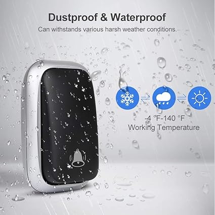 【Kalite güvencesi ve memnun hizmet】Kablosuz kapı zilimiz toz geçirmez ve IP44 su geçirmezdir ve farklı sert hava koşullarına dayanıklıdır. Basma düğmesi, testimize göre 150.000 tıklamaya kadar maksimum 20 yıl kullanım ömrüne ulaşabilir. Ayrıca, profesyonel bir satıcı olarak, her müşteriyi memnun etmek için her zaman elimizden gelenin en iyisini yapıyoruz. Herhangi bir sorunuz varsa, memnun edici bir çözüm elde etmek için lütfen bize bir Amazon mesajı gönderin.