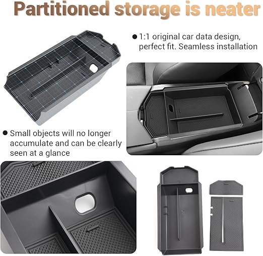[Optimize edilmiş depolama alanı] Orijinal araç saklama kutusunun çok derinliğini iyileştirin ve katmanlı tasarım sorunu yoktur. Cep telefonları, kartlar, cüzdanlar, bozuk paralar, kalemler, anahtarlar vb. gibi küçük eşyalar daha rahat düzenlenebilir.