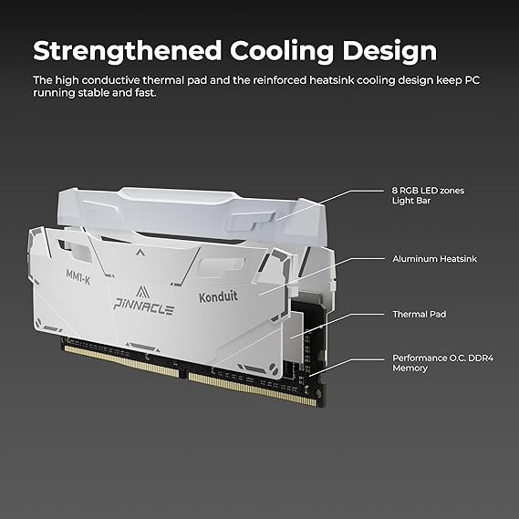 Pinnacle Konduit RGB DDR4 3200MHz PC4-25600 CL16-18-38 XMP2.0 Hız aşırtma 1.35V AMD ve Intel Masaüstü Oyun PC Bellek Modülü ile Uyumlu RAM – Beyaz (3200Mhz 32GB)