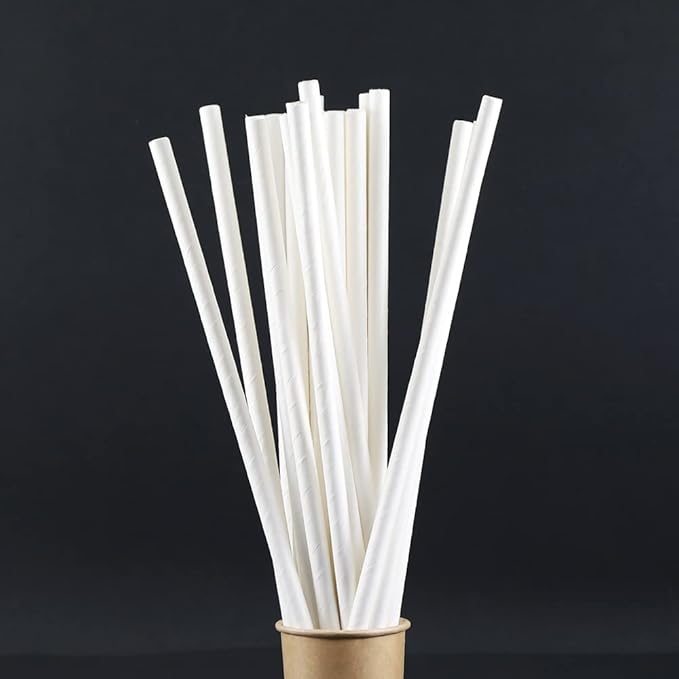 Pipet 100 adet beyaz kağıt pipet, çap 6 mm 20 cm, PLA/PE içermez, biyolojik olarak çözünebilir tek kullanımlık pipet, sağlam kağıttan