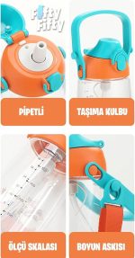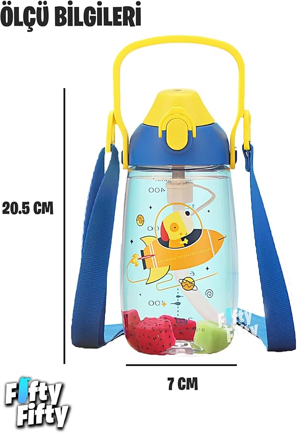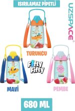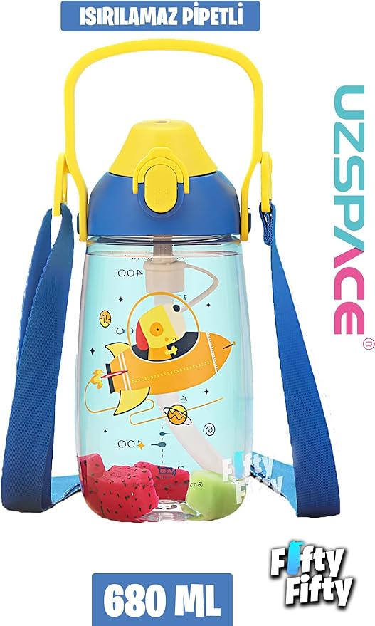 Pipetli 680 Ml Boyun Askılı Tritan Çocuk Su Matarası -Kutulu- FFUZ2202680