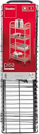 PISA ANIVERSARIO – Tekerlekli 4 Katlı Plastik Kaplamalı Çok Amaçlı Taşıma Arabası. Renk Siyah Boyutlar: 41 x 23 x 84 santimetre