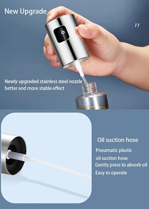 Sağlıklı püskürtücü: Gıda ile temas yönetiminin gereksinimlerini karşılayan yüksek kaliteli 304 paslanmaz çelik ve gıda sınıfı cam şişeden oluşur, güvenli ve kokusuzdur ve kullanım için doğrudan yemeklik yağa konabilir.