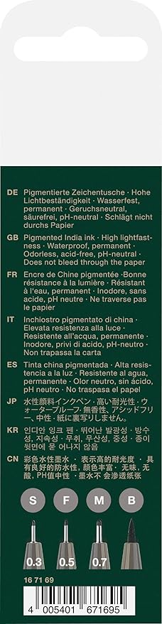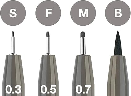 4 FARKLI UÇ SEÇENEĞİ : S (0.3 mm), F (0.5 mm), M (0.7 mm), B (fırça ucu) kalemlerle farklı çizim teknikleri uygulayabilirsiniz.