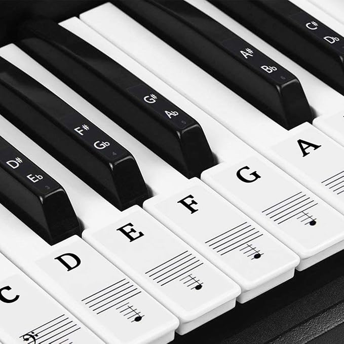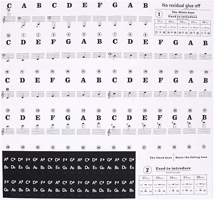 Piyano çıkartması, 37/49/54/61/88 tuşlar için, piyano tuşları çıkartması, piyano klavyesi notaları çıkartması, şeffaf çıkarılabilir, birinci sınıf piyano klavye çıkartması, komple set (B)
