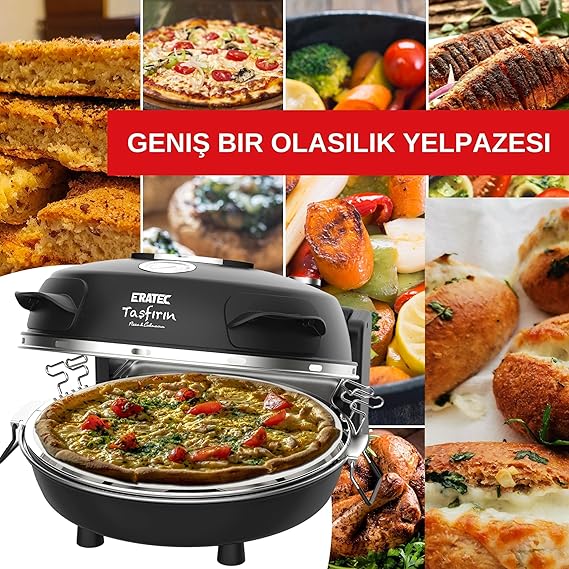 Pizza fırını – ERATEC mini fırın sadece birkaç dakika içinde pizza, tart, lahmacun ve tava yemekleri gibi lezzetli yemekler hazırlar. Yerleştirilebilir taş sayesinde yemek lezzetli, orijinal bir taş fırın tadı kazanır.