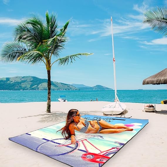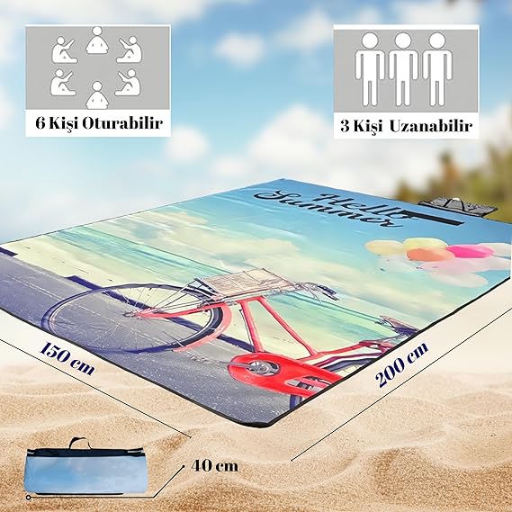 Plaj Havlusu, Piknik Örtüsü, Plaj Matı, Çantalı Plaj Hasırı,Kamp Battaniyesi, Kamp Matı, Katlanabilir, Hafif, Su Geçirmez, Kum Geçirmez (Bisiklet-Sahil Yolu)