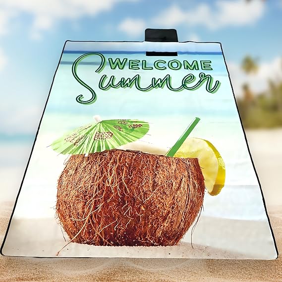 Plaj Havlusu, Piknik Örtüsü, Plaj Matı, Çantalı Plaj Hasırı,Kamp Battaniyesi, Kamp Matı, Katlanabilir, Hafif, Su Geçirmez, Kum Geçirmez (Hindistan Cevizi)