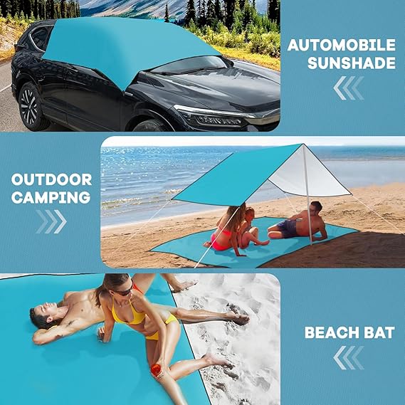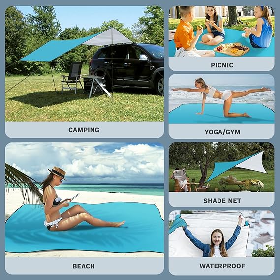 【Mükemmel malzeme】Plaj örtüsü, kum tutmaz, kum geçirir, kırışmayan 210D gümüş kaplamalı su geçirmez Oxford kumaştan üretilmiştir, zehirsiz ve kokusuz, ısı yalıtımlı ve yırtılmaz, su geçirmez, kum geçirmez ve UV ışınlarına dayanıklıdır. Uzun ömürlü, iyi işçilik ve güzel renk. Kum içermeyen plaj örtüsü cilt dostudur ve geleneksel naylon ürünlerden üstündür.