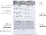 ÇEVRE DOSTU: Ajandanın aksine sayfalardaki tarih bölümü boş bırakılmıştır. Bu sayede her sayfayı istediğiniz tarih için kullanabilirsiniz. Ajandada her gün için bir sayfa ayrılmıştır ancak her gün ajandaya ihtiyaç duymayabilirsiniz. Günlük planlayıcıda bir sayfayı bitirdiğinizde koparıp geri dönüştürebilirsiniz. Tüm bu özellikler bu planlayıcıyı kullanırken çevreye verilen zararı azaltır.