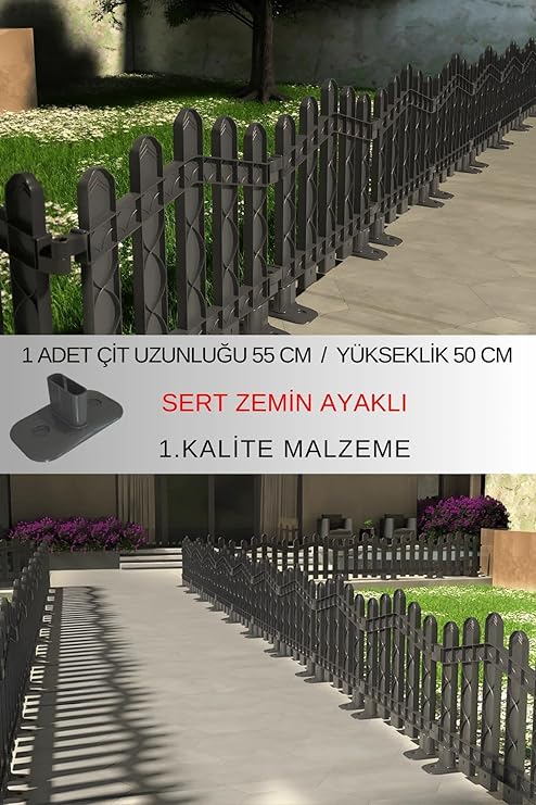Plastik Alan Oluşturma ve Bahçe Çiti 1 ADET ÇİT (Y: 50 CM/G: 55 CM) SERT ZEMİN AYAKLI (Antrasit Gri)Uygunluk: 30 adet stokta