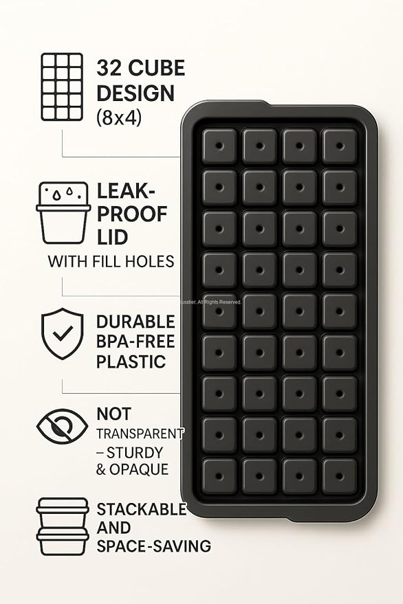 Plastik Buz Kalıbı 32 Bölmeli Kare Küp Şeklinde Buzluk Kalıbı Su Doldurma Kapaklı Sızdırmaz Tasarım Gıda Uyumlu Malzeme