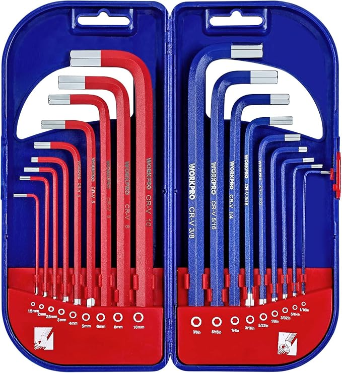 Plastik CR-V İç altı köşeli alyan anahtar seti in 1,5 “-10 mm metrik ve 1/16” bis 3/8 inç açılı tornavida-Seti